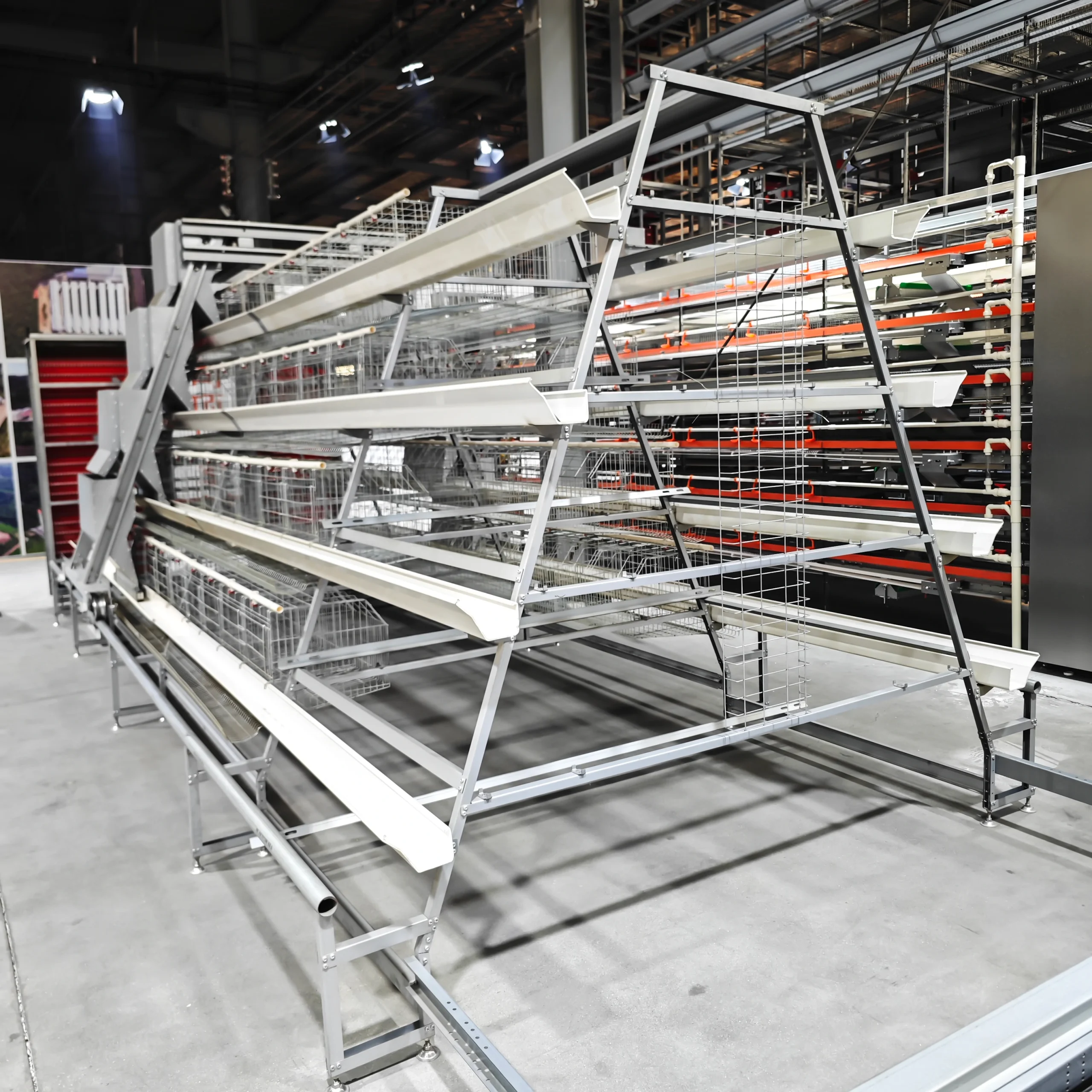 The A-type layer cage adopts a triangular structure for enhanced stability, offering easy access for management and cost-effective solutions for small to medium-scale poultry farms.